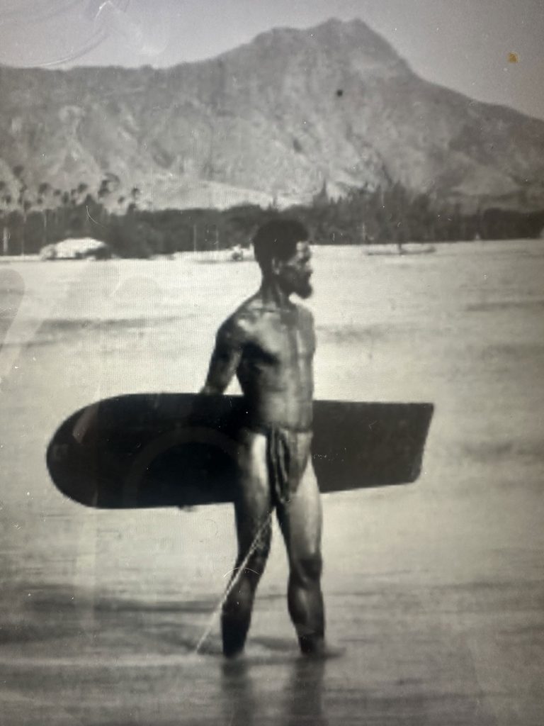 The Hawaiian word, Pae Po’o means to surf head first, which Captain Cook and his crew witnessed when they arrived in Hawaii, in 1778. Watching the “native” men, women and children riding these boards on their belly or on their knees must have been quite a sight for the sailors who sailed into the shores of Hawaii. These smaller boards were easier to ride than the larger, heavier boards of the time which only the strongest of warriors and the greatest of leaders were chosen to ride. This board is the great grandfather of the Morey Boogie Board and has brought joy to ‘surfers’ for centuries.